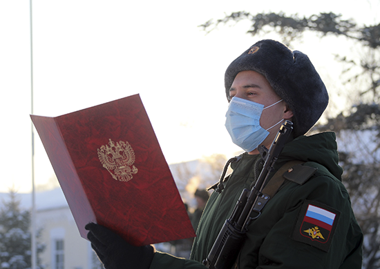 Больше 100 новобранцев в торжественной обстановке произнесли клятву на верность Родине. Мероприятие прошло с соблюдением повышенных противоэпидемических мер. Военнослужащих обеспечили медицинскими масками.