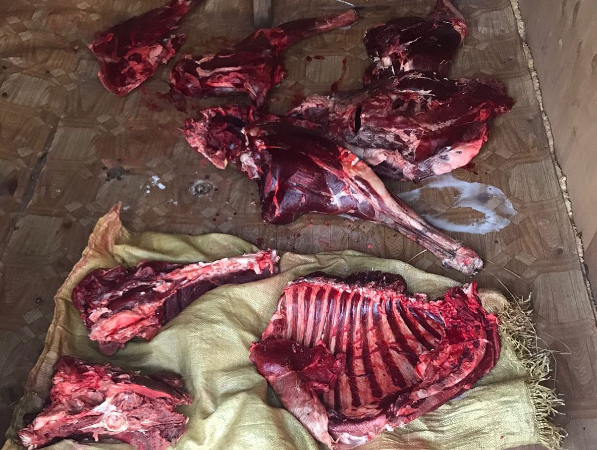 Преступника выдала голова взрослого самца сибирской косули, которая лежала на бытовом вагончике. В соседней подсобке инспекторы нашли разделанное мясо животного, а неподалеку на территории базы и карабин с военными патронами.