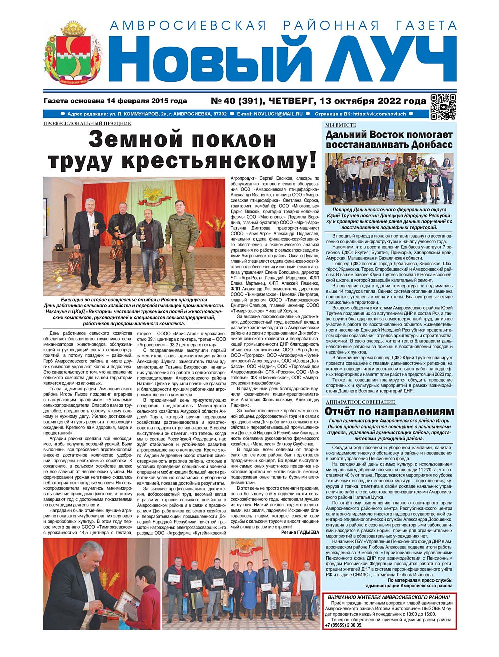Главную площадь Амвросиевского района ждет реконструкция, в этом подшефной территории поможет Амурская область. О главных событиях недели – в новом выпуске газеты «Новый Луч» (16+).