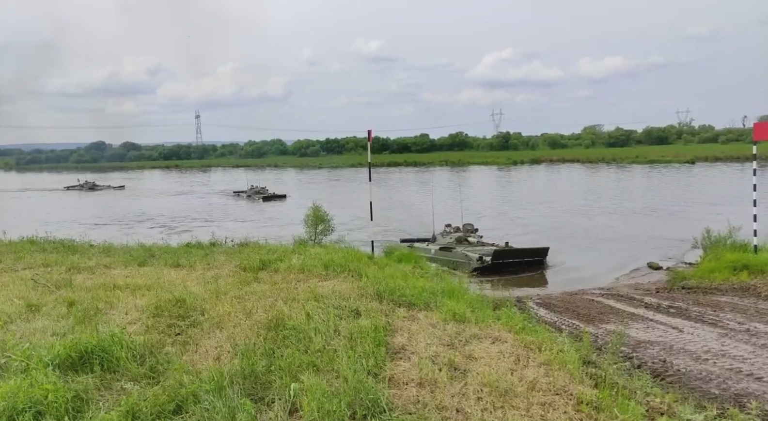 "Водные преграды - одно из самых сложных препятствий для боевых машин. Погружение в воду сопряжено с преодолением серьезного психологического барьера, так как БМП и бронетранспортеры дают большую осадку", - сообщает пресс-служба Восточного военного округа.