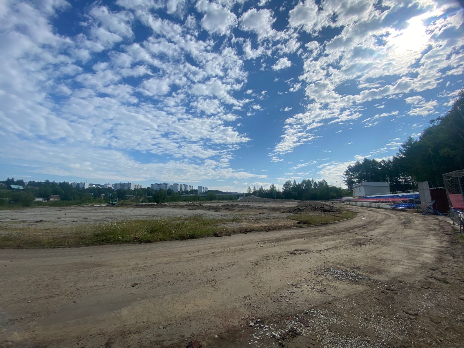 В настоящее время разработана проектно-сметная документация (ПСД) и архитектурная концепция объекта, согласован эскизный генеральный план и визуализация предстоящего строительства. Демонтировано искусственное покрытие футбольного поля и ограждающие конструкции стадиона. Продолжается выравнивание покрытия.