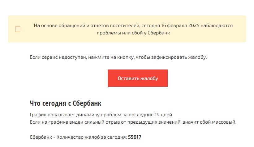 Более 55 тысяч жалоб на сбои поступило 16 февраля.