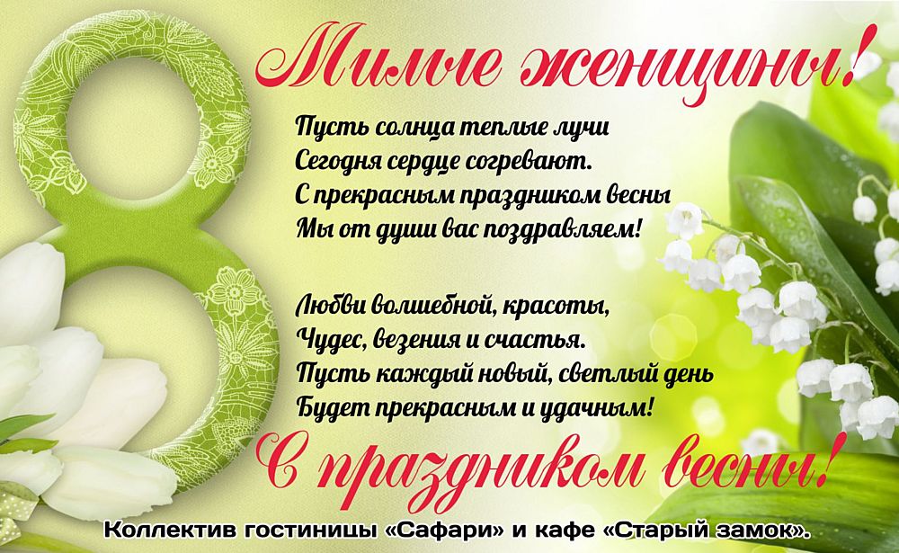 Этот праздник мы отмечаем с особой теплотой. Он наполнен подарками, цветами, самыми добрыми чувствами к нашим мамам, женам, дочерям, коллегам по работе — ко всем близким нашему сердцу женщинам.
